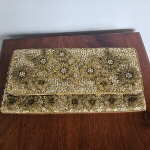 Vintage 1960s Gold Beaded Clutch, Hand Made in Hong Kong, Beautiful!