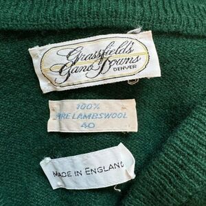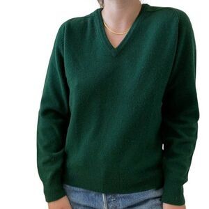 Vintage 1960s Green 100% Lambswool V Neck Preppy Sweater Sz M Made in England