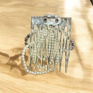 Vintage 1960s Hair Pin Clip Snap Alligator Pearl Beaded Comb Set Lot