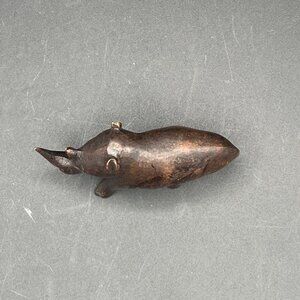 This is a charming vintage piece, a small, hand-carved wooden rhinoceros. The style is characteristic of folk art or tourist art from the mid-20th century, likely the 1960s, a period when such carvings were popular. This hand-carved wooden rhinoceros is a lovely piece of vintage decor. Its simple design and the natural patina of the wood give it a timeless appeal, perfect for a collection of vintage animal figurines or as a unique accent piece on a bookshelf or desk.