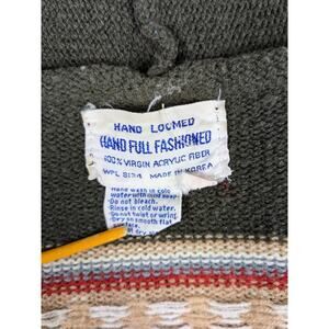 Vintage 1960s Hand Full Fashioned Hoodie Adult Small Green Fair Isle Pullover