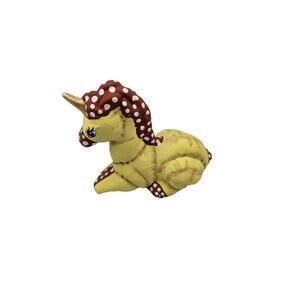 Vintage 1960s Hand Painted Ceramic Unicorn Figure Figurine Yellow Red Polka Dot