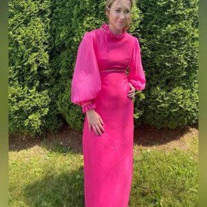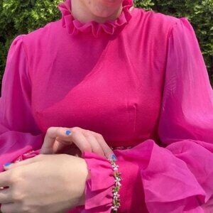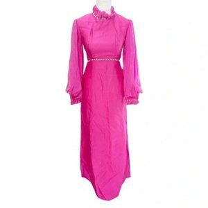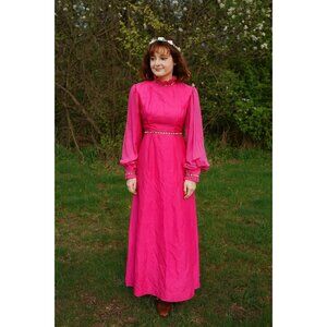Vintage 1960s Hot Pink Bohemian Floral-Trim Maxi Dress – Psychedelic Flower Chil