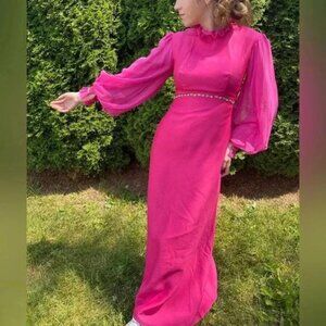 Dance back to the ’60s with this radiant Hot Pink Bohemian Maxi Dress, perfectly capturing the era’s free-spirited Flower Child vibe. Its bold pink hue, billowing silhouette, and charming floral accents make it a standout piece for vintage lovers.