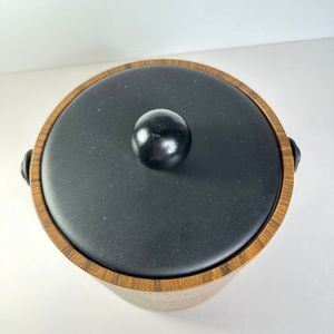 Vintage 1960s Ice Bucket Brown Vinyl Wood Tones Kraftware