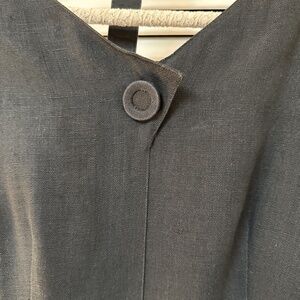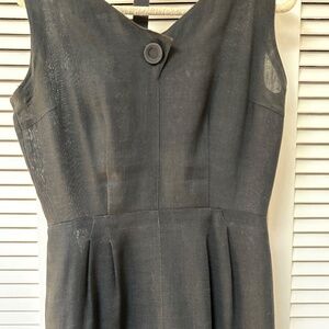 High quality vintage late 1950s early 1960s little black dress. Pure Irish Linen. No stretch to the material. The fabric is in excellent condition. The fabric is opaque but sheer, so I recommend wearing with a full slip. ILGWU union label. Tailor Town brand. Back zipper. Small pocket on right hip. Matching belt, although I wore it with a colorful scarf sash around the waist.