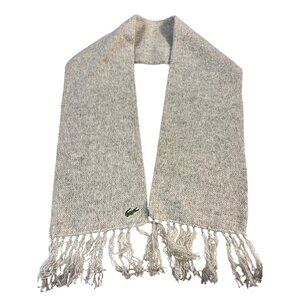 Vintage 1960s Izod Lacoste Womens Gray Fringe Scarf Iconic Crocodile Logo