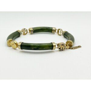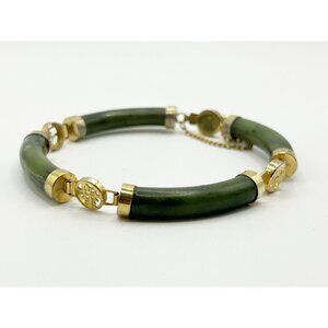 The bracelet has 4 curved jade cylinders segments approximately 1 1/4" long.