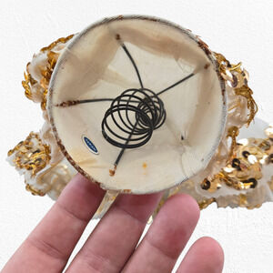 Vintage 1960s Japan Angel Tree Topper Gold Sequin Tulle Dress 8” Christmas Decor
