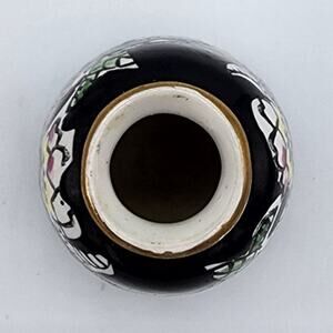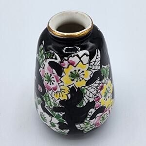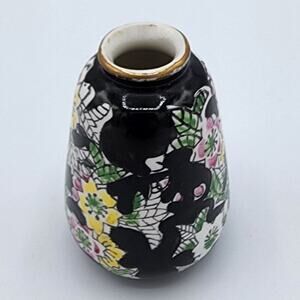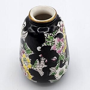 Vintage 1960's Japanese Enesco Mini Black Hand Painted Floral Gold Trim Bud Vase