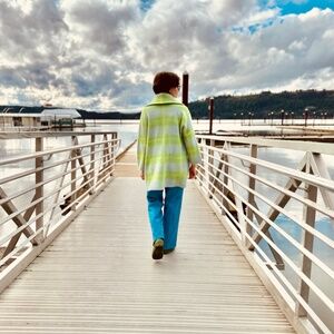 ¾ sleeve, two front pockets. Fabric has some pilling, overall great vintage condition.