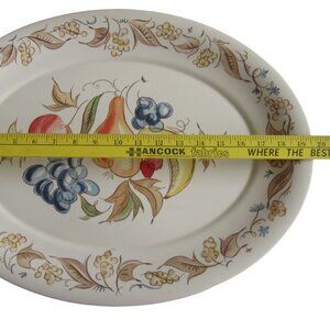 Vintage melamine platter features a fabulous midcentury fruit and floral design, possibly Georges Brirard.