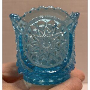 Vintage 1960s LE Smith Glass Light Blue Sunburst 2" Toothpick Holder - EUC