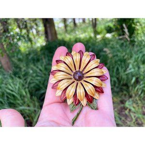 Here for your consideration is a nice vintage large flower enamel brooch. It measures 2.5" wide. It is in good wearable vintage condition.