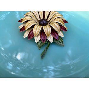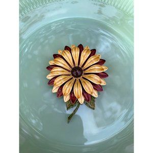 Vintage 1960s Large Enamel Flower Brooch Yellow Brown
