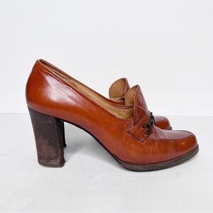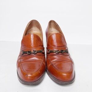 Vintage 1960’s Leather Cognac Horse Bit Heels Size 6 Women’s