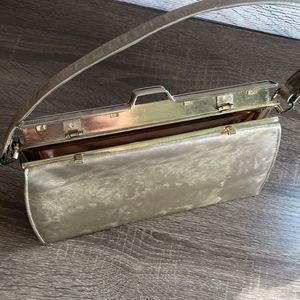 1960’s Lenox Hand bag gold with metal latch super cute and overall in great condition some normal wears inside due to age from makeup some peeling on inner straps small black spots on bottom check pics for measurements