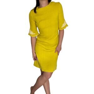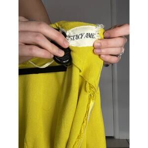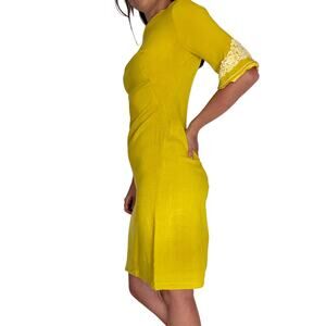 Vintage 1960s Lime Green Shift Dress Stacy Ames Lace Trim Linen Metal Zipper. Authentic 1960s Stacy Ames lime green shift dress. The dress is knee length with elbow length sleeves. There is lace trim on the sleeves. The sleeves are lined with an acetate fabric, the rest of the dress is unlined.