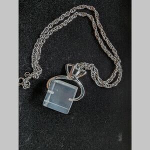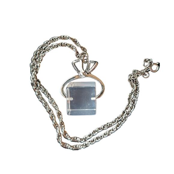 Great vintage condition lucite ice cube with tongs necklace. The tongs are plastic, but the chain is metal. See photos.