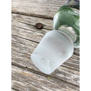 Here for your consideration is a lovely vintage art glass small petite decanter bottle. The bottle, not including the stopper measures 5" and the stopper is 3.25" long. The bottom corner of the bottle has a tiny flea neck. The inside stopper bottom also has a tiny nick. It still displays beautifully.