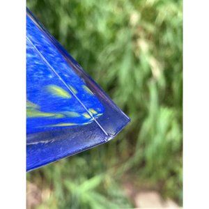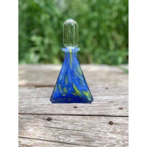 Vintage 1960s MCM Art Glass Petite Decanter Blue Yellow Swirl