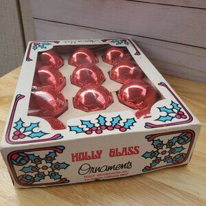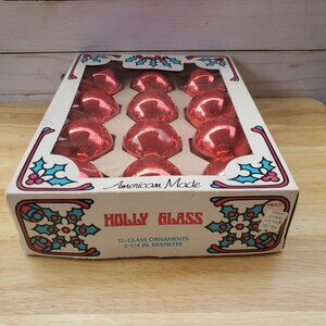 Vintage 1960s MCM Holly Glass Christmas Ornaments Set Of 12 Red 2" Original Box