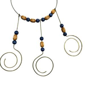 Super cool 1960’s modernist psychedelia feel to this choker necklace with 3 beaded drops that end in large swirl shapes. A real statement piece.