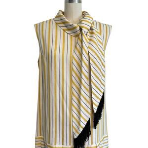 Vintage 1960s Martin Berens Drop Waist Yellow Striped Sleeveless Dress Medium