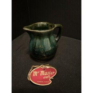 Add a touch of vintage charm to your collection with this beautiful green fade red clay pitcher from the 1960s. Made by McMasters in Canada, this round, high-gloss ceramic and porcelain pitcher is a perfect addition to any home decor. With a single compartment and a capacity of 3 inches, this small pitcher is perfect for all occasions, whether you're serving cream or water.