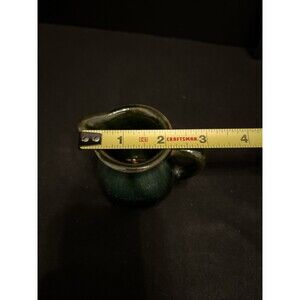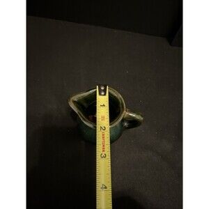 The antique pitcher has a unique style that reflects the era, with a beautiful green fade design and a glossy finish. It measures 2.25 inches in length, 2.75 inches in depth, and 3 inches in height, with a weight of 6 oz. This original, vintage piece is a must-have for any collector or lover of 1960s design.