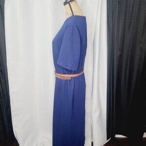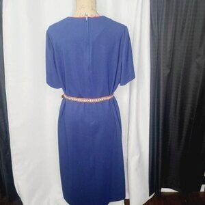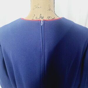 Vintage 1960s Mid Century Mod Navy Blue Red Piping Trim Plus Size Dress