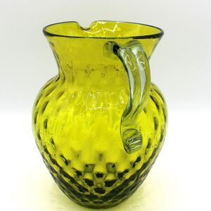 Vintage 1960s Pilgrim Green Diamond Optic Pattern Glass Pitcher Decanter Vase