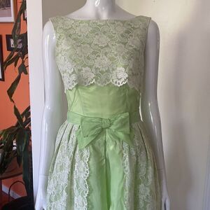 Vintage 1960s Mint & Lace Formal Midi Dress Size XS