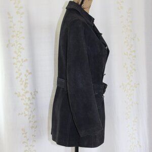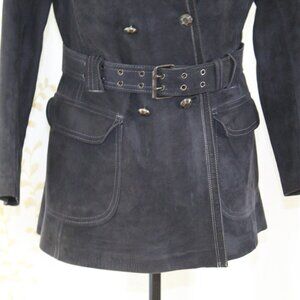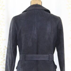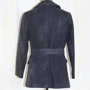 Vintage Aleksander Blue Lamb Leather Belted Button Up Jacket