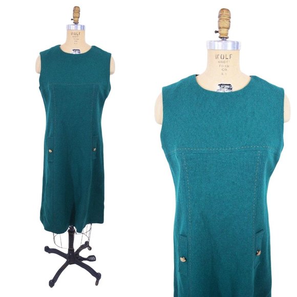 Vintage 1960s Mod Dress Green Sleeveless Shift | W 35"