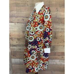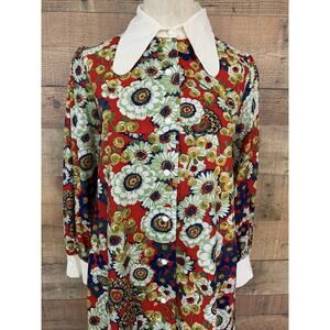 Vintage 1960’s Mod Floral Cotton Button Front Dress Size XS/S Hippie