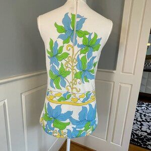 1960s Vintage Mod Sleeveless Garden Floral Top-Back Zipper Closure-No Fiber Content