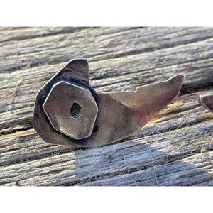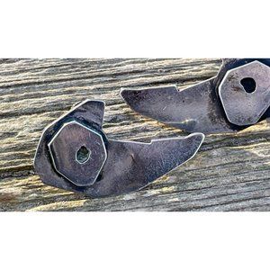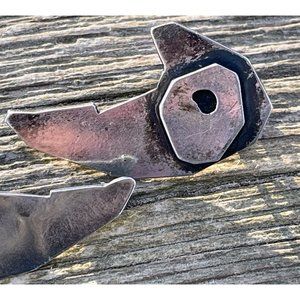 Here for your consideration is a nice vintage pair of sterling silver Modernist Machinist style screw back earrings. They are marked and tested for sterling silver. They measure 1.25" x 1". They have some patina and are left unpolished. They are in good wearable vintage condition.