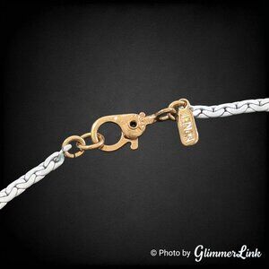 Dainty vintage Monet bracelet featuring a white enamel chain with a polished gold tone bow centerpiece.