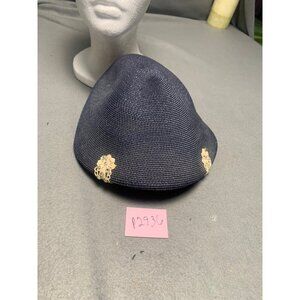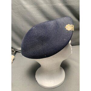 Vintage 1960s Navy Blue Velvet & Straw Hat with Gold Embellishments Adjustable