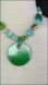 This necklace hits right below the collarbone… And has an adjustable clasp. Very beautiful shades of green and aqua with some gold and bone accents. Ceramic material. Perfect condition. Very 60s