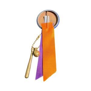 Pinback measures 1.5 inches in diameter and 5 inches in length. Please see photos for condition.