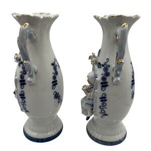 Transform your living space with this stunning set of vintage porcelain vases, featuring intricate boy and girl figurine designs. The elegant blue and gold accents provide a timeless charm that enhances any decor. These collectible pieces not only serve as decorative art but also as captivating conversation starters, making them a must-have addition.