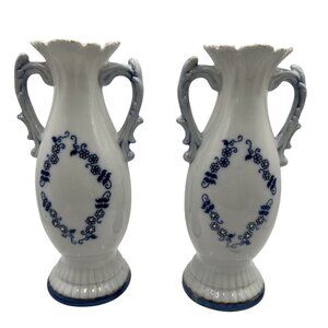 Vintage 1960s Norleans 2 Victorian Style Porcelain Figurine Vases Made In Japan