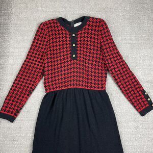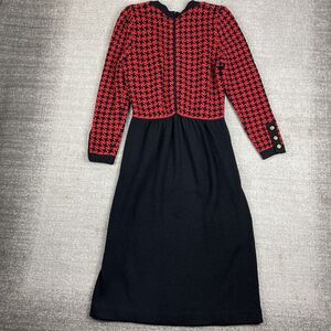 Vintage 1960s Pat Sandler Houndstooth Black Red Knit Midi Sweater Dress US 12