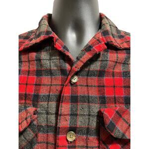 Vintage 1960's Pendleton 100% Wool Red Plaid Shirt - Men's Medium - Distressed