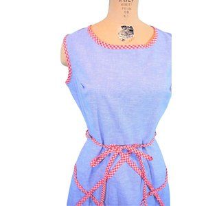 Vintage 1960s Picnic Dress Blue Chambray Red Checkered Sheath | W 28"
