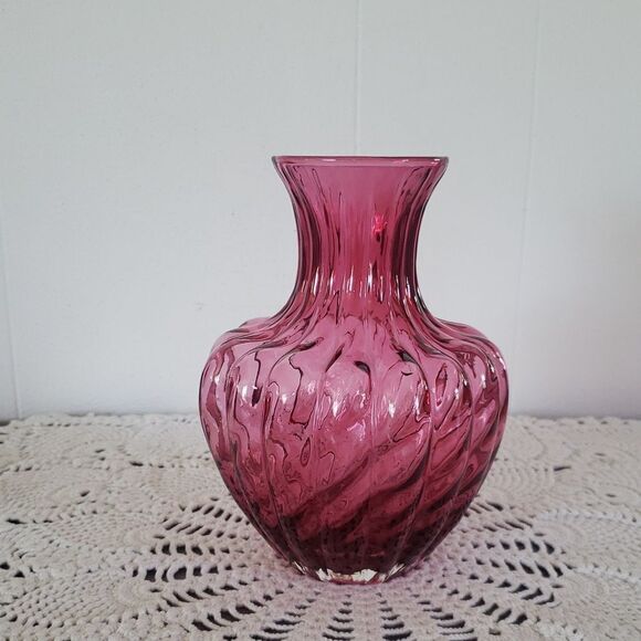 Gorgeous cranberry vase with swirled ribbed features