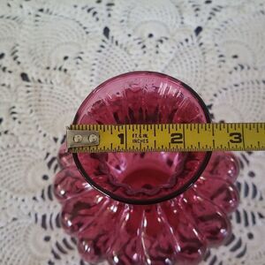 Vintage 1960s Pilgrim Cranberry Glass Optic Swirl Ribbed Vase 6"
