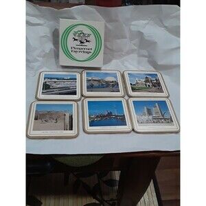 Vintage 1960s Pimpernel Fayreings Scenes of Ontario 6 Piece Coasters. Vibrant colors woth classic, historic views from Ontario, Canada. Scenes include vintage cars, clothing styles from the 60's. Each coaster is cork backed and very clean. Condition is "Used". Shipped with USPS First Class.